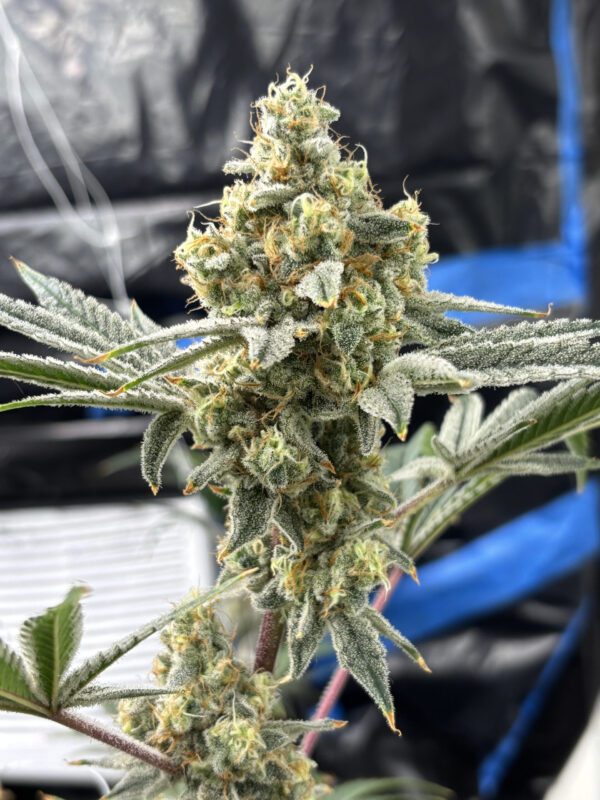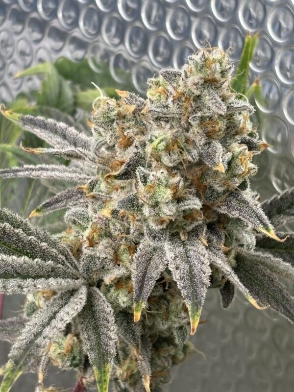 Grape Mountain, bred by Bloom Seed Co., is a powerhouse hybrid born from the cross of MTN Trop and (Grape Pie x Wedding Crasher). This strain doesn’t just bring the fire—it delivers a smooth, creamy aroma with a doughy flavor profile, like that first hit of coffee creamer blending into a strong brew. The buds? Big, bold, and dripping with purple hues, flexing their quality before you even take a rip. Expect an uplifting, happy high that keeps the good vibes rolling—perfect for kicking back with the crew or lighting up any social scene.